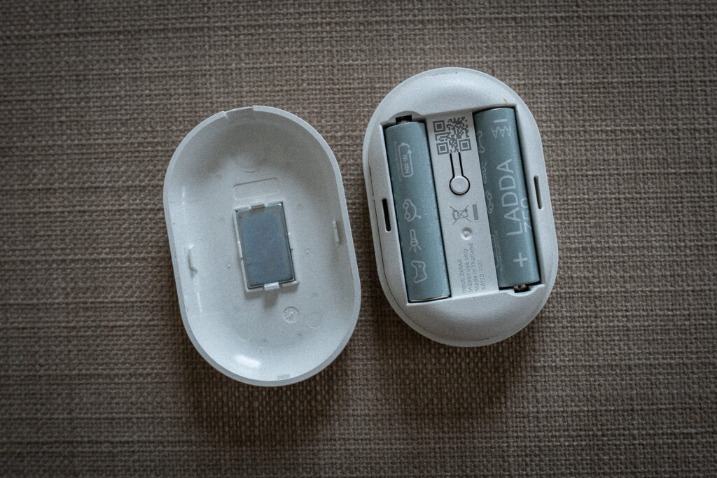 Zusätzlich haben wir eine weitere BILRESA Fernbedienung mit Scrollrad installiert. Dank Magnethalterung ist sie abnehmbar und direkt neben den Lichtschaltern an der Tür befestigt. Damit können wir bequem dimmen und zwischen Stehlampe und Deckenleuchte wechseln.